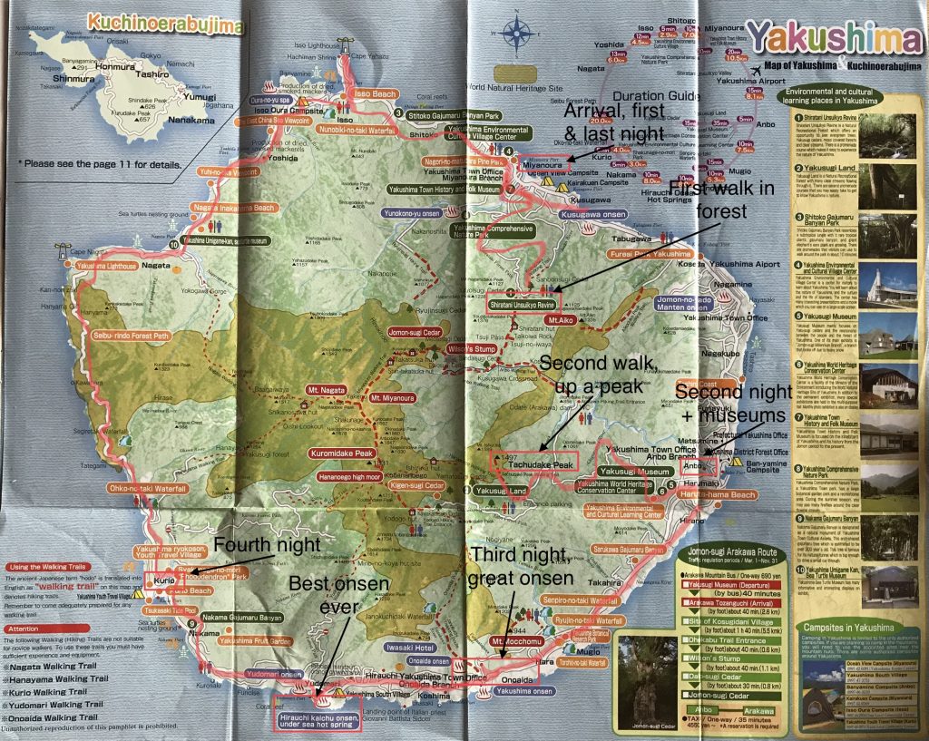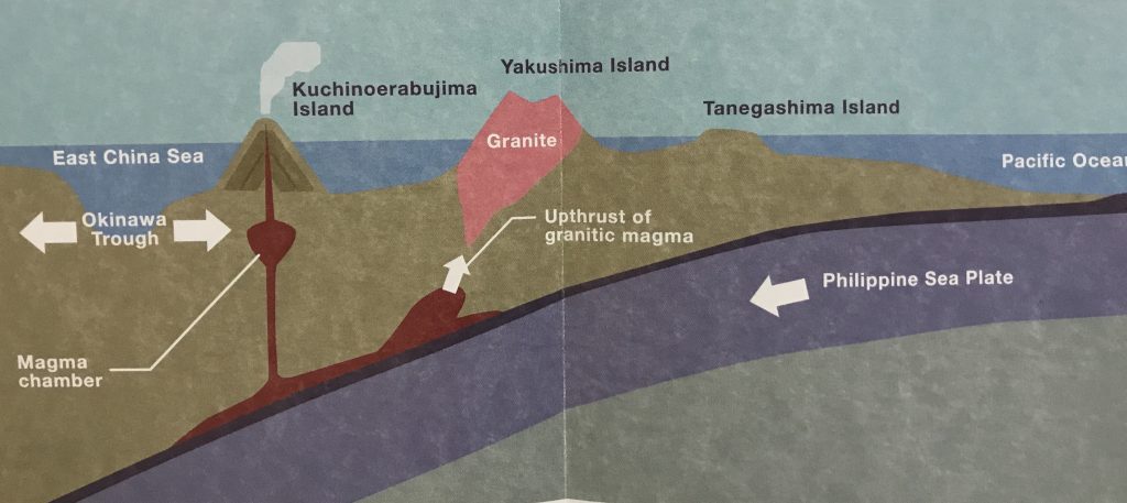 (*) Note: Although at first glance on a map, Yakushima would look like an island made from a volcano… it is almost a perfect circle, 20km in diameter, with in the middle mountains reaching 1800m! … this island is in fact made of granite that formed under the ocean and was pushed up by the moving plates.