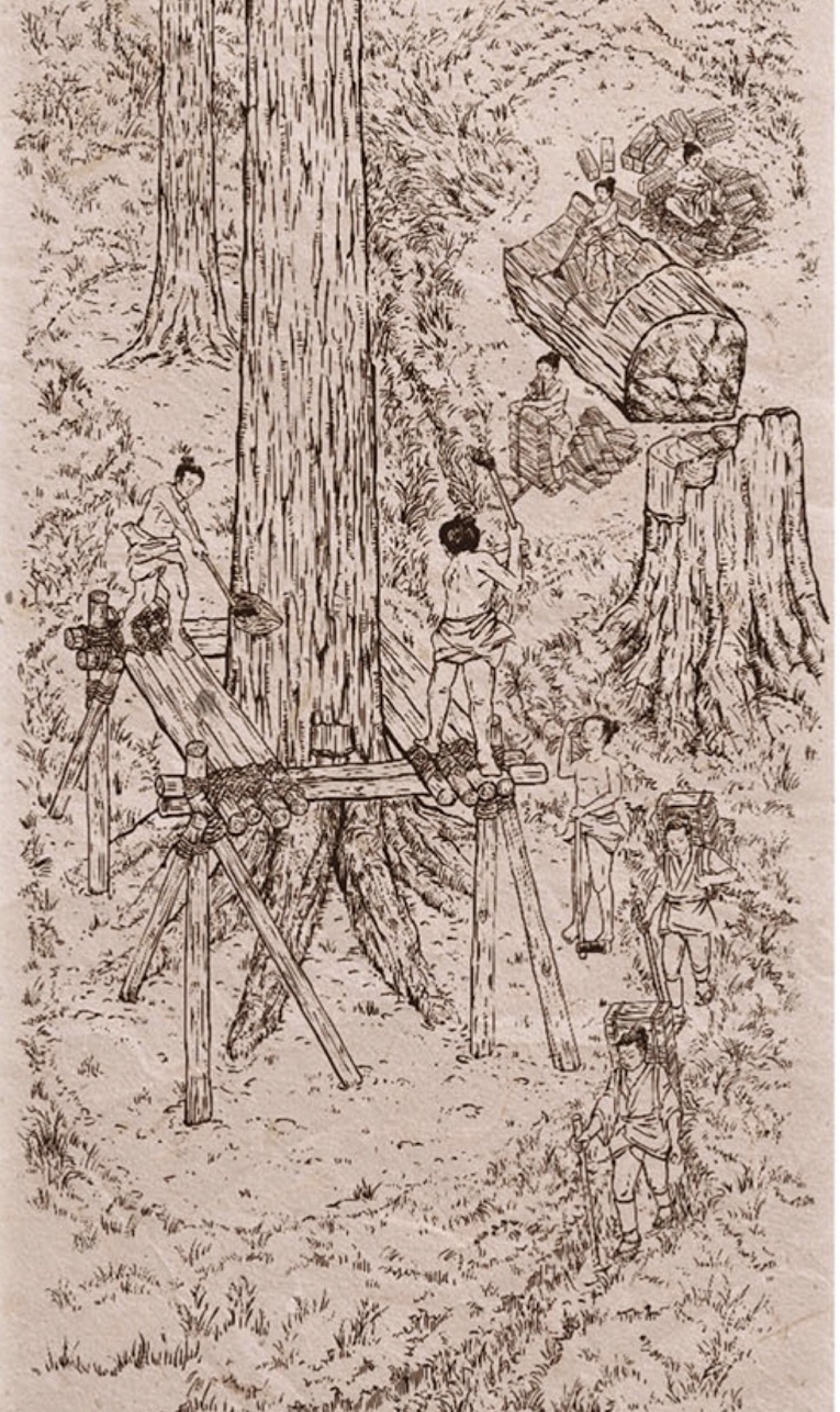 … most were harvested either to build / re-build temples or to make roof tiles => shingles.