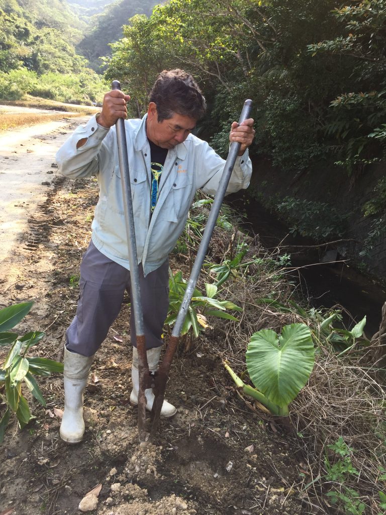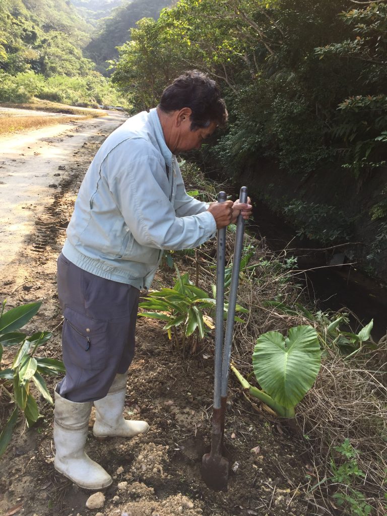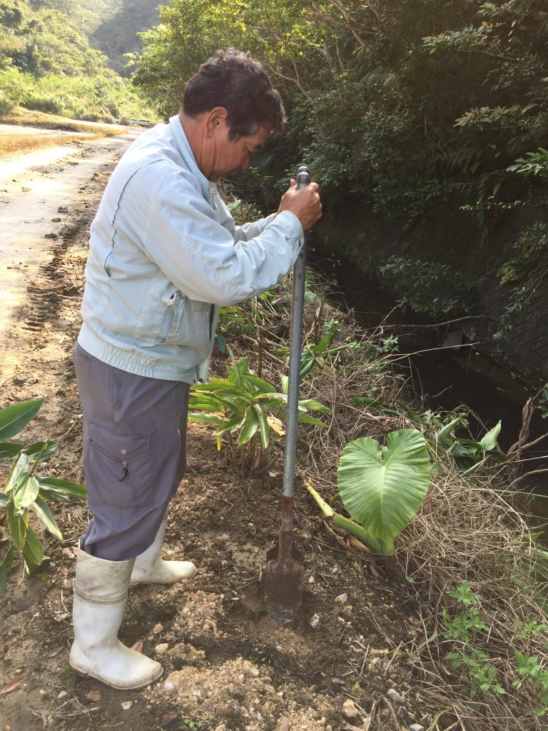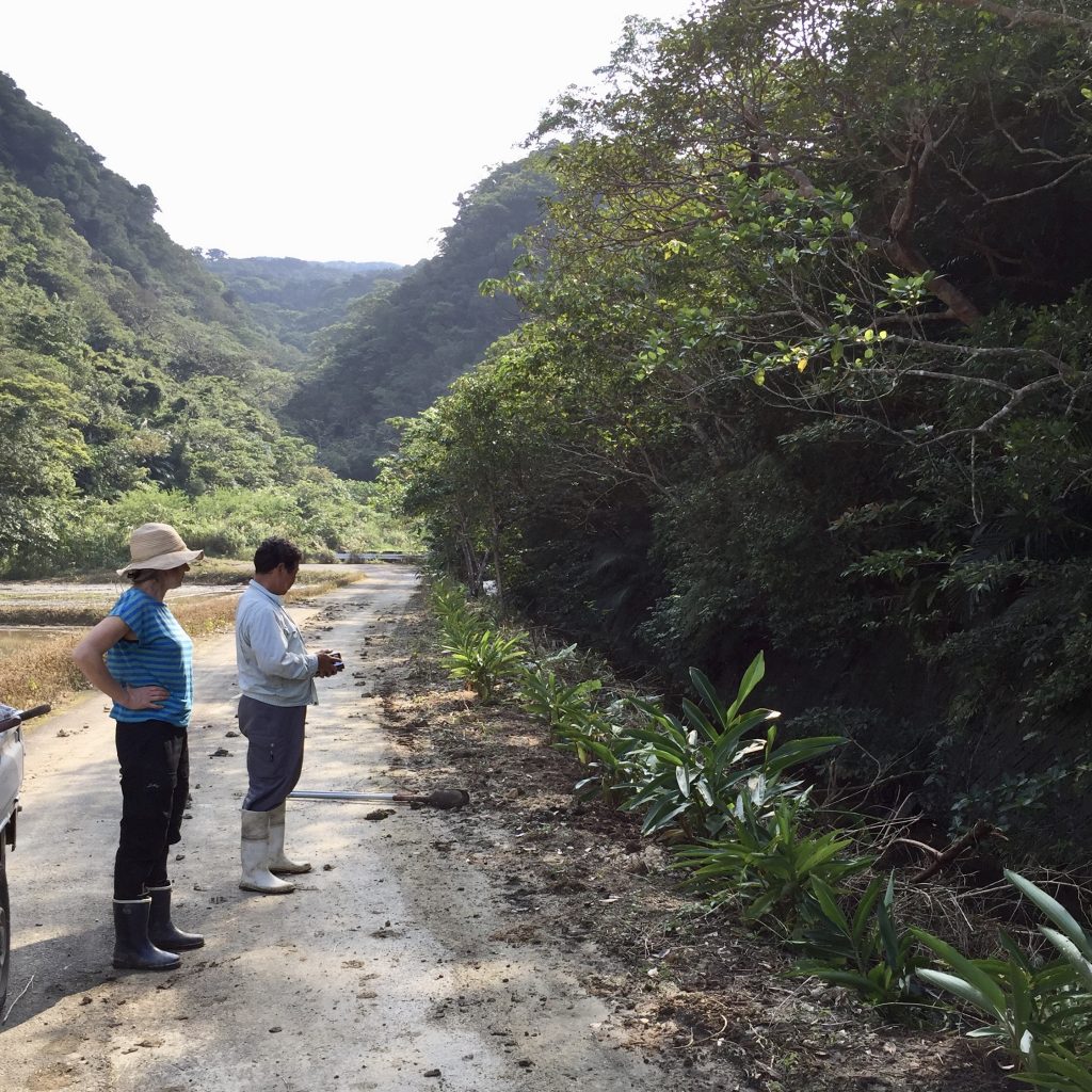 Kazumasa, native of Iriomote, 30-ish … may have spotted a Yamaneko (endemic wild cat, more like a mini leopard) for the first time!We all stopped working and search/looked… in vain!