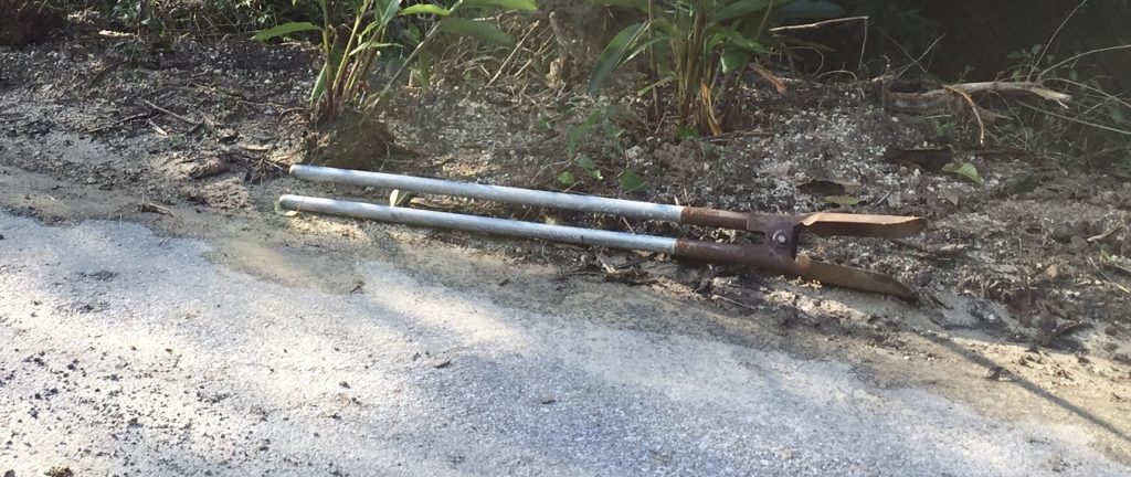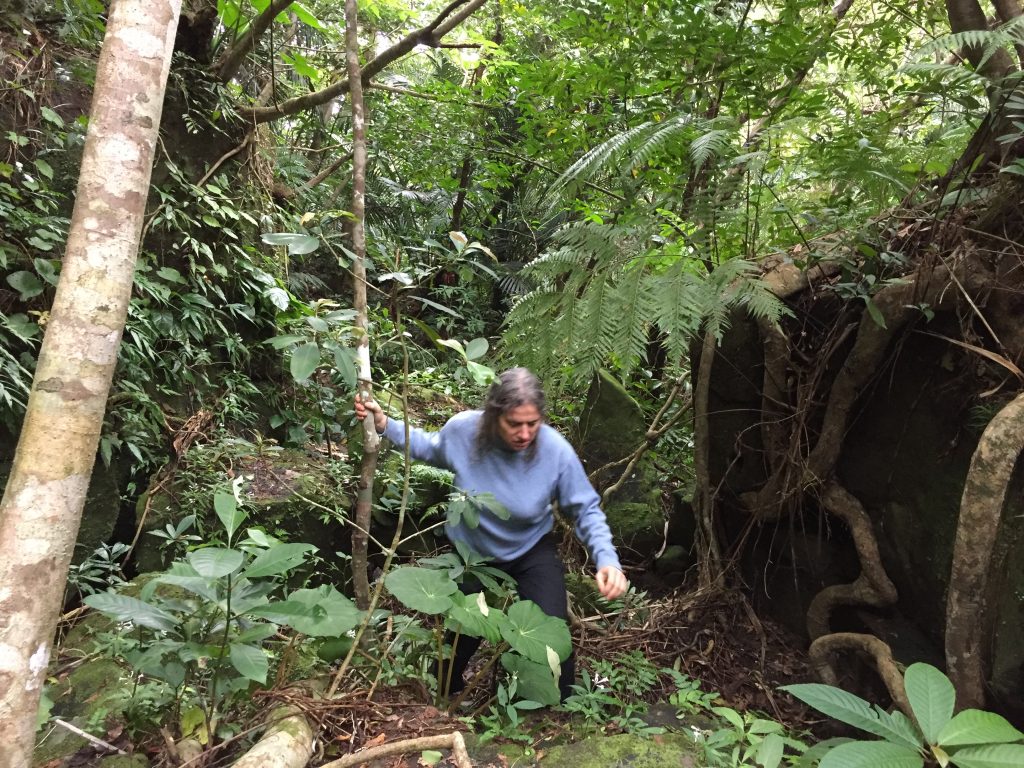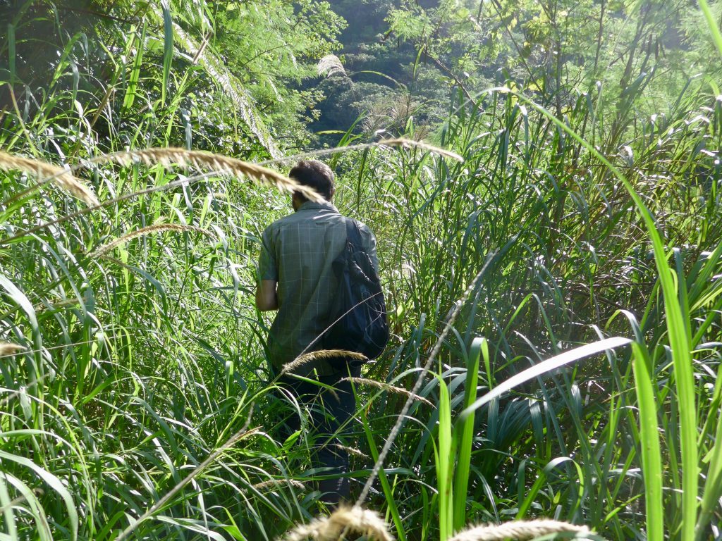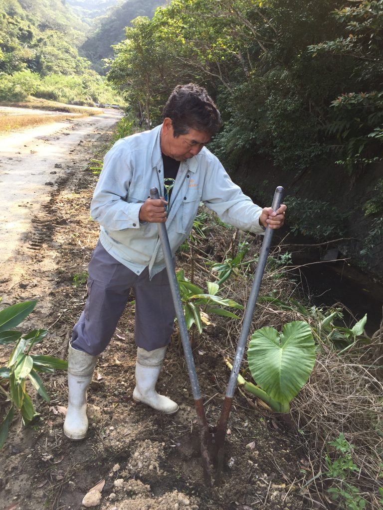 Kazumasa, native of Iriomote, 30-ish … may have spotted a Yamaneko (endemic wild cat, more like a mini leopard) for the first time!We all stopped working and search/looked… in vain!