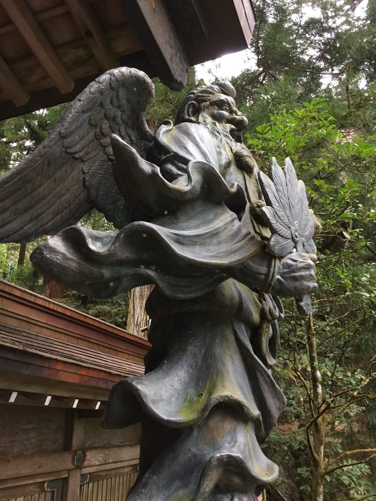 The temple protector, big nose with wings and wearing getta as shoes!