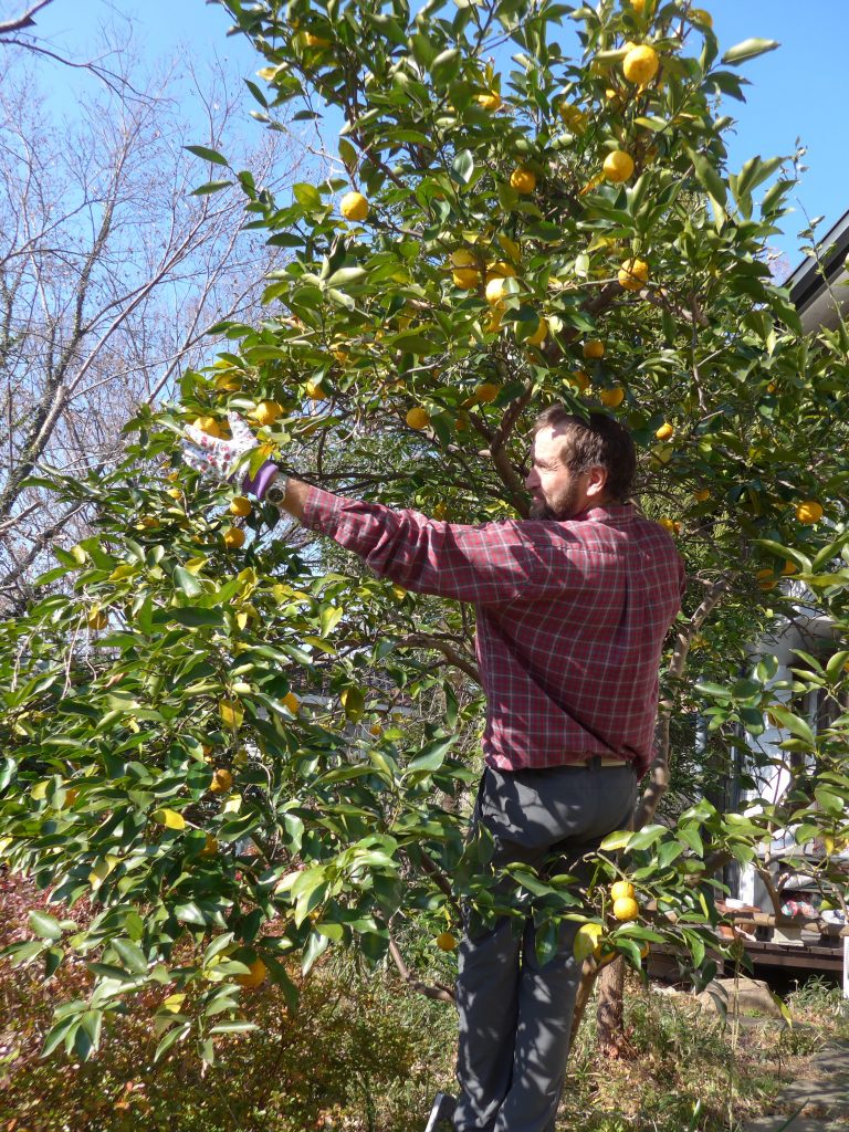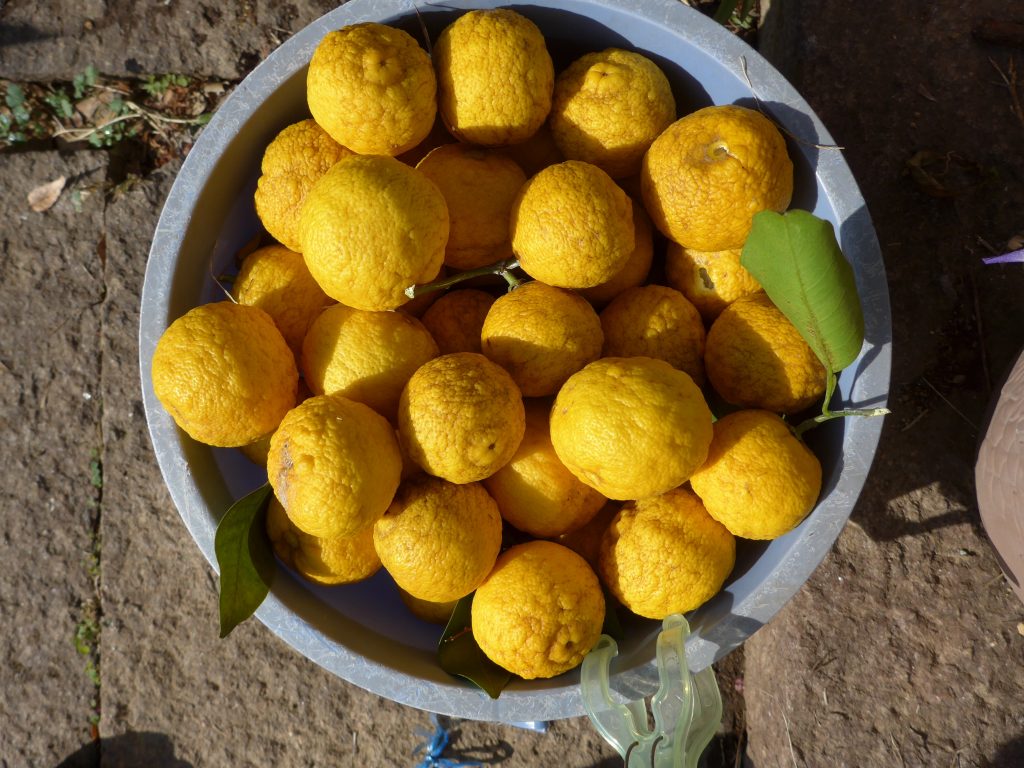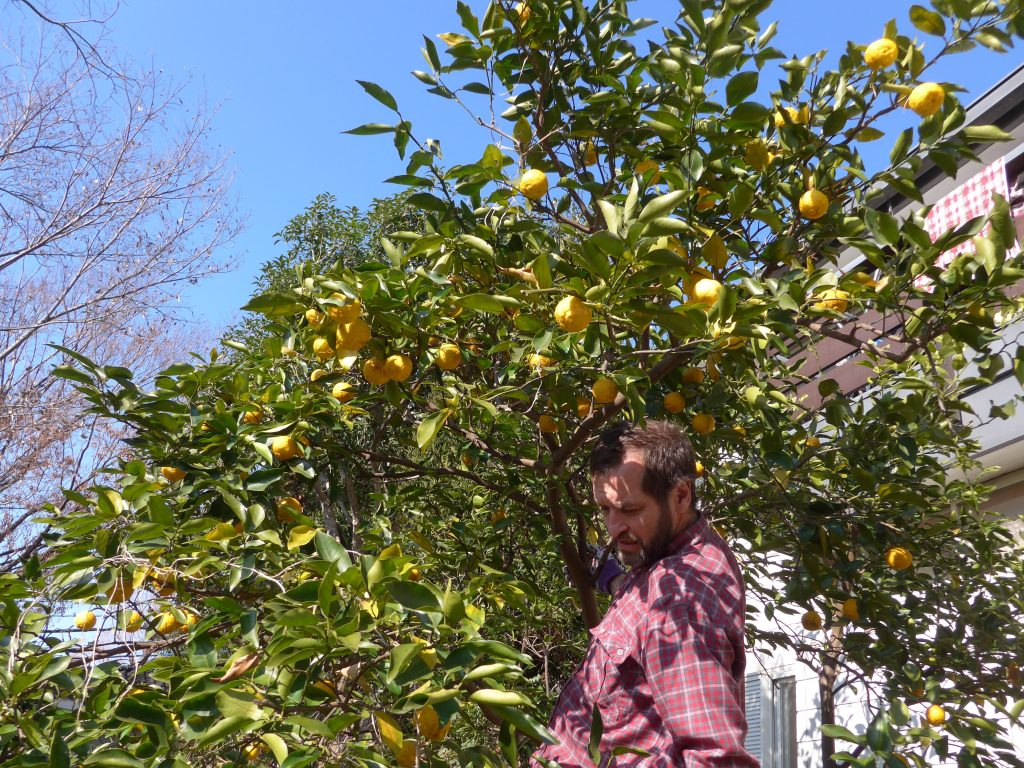 A (20l) bucket of yuzu later, checking on internet for recipes … they claimed using 5 yuzus for 1l of water! So we kept guessing and following our own inspirations!