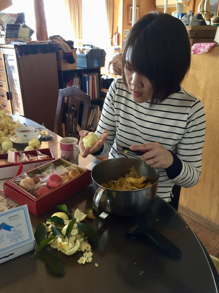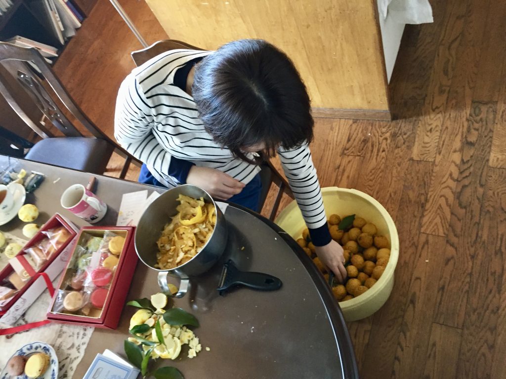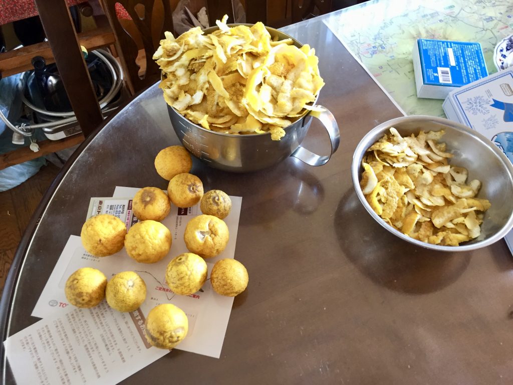 As they have a Yuzu tree in their garden and nothing had been made with the fruits, we got the great idea to suggest making some jam/marmalade from those fruits: