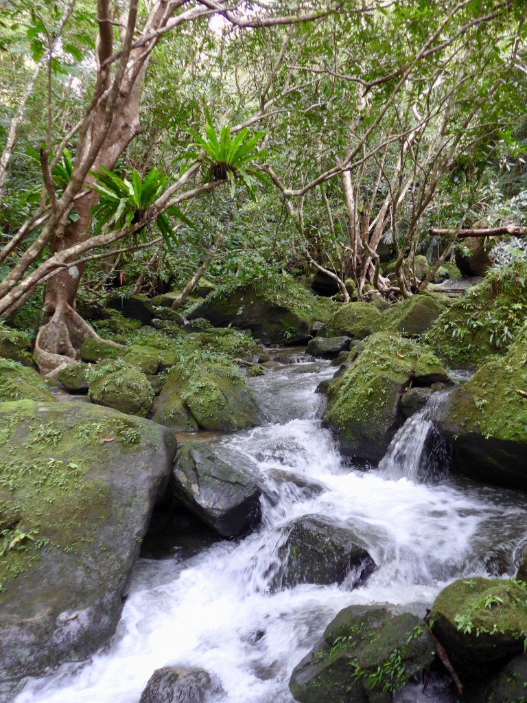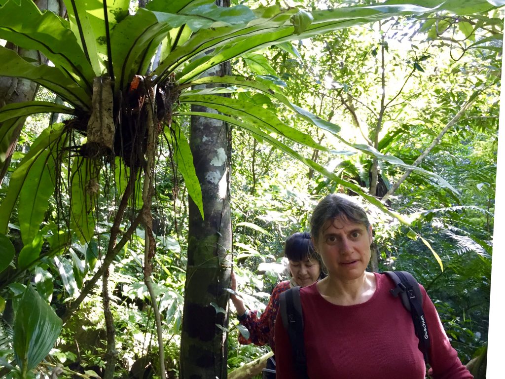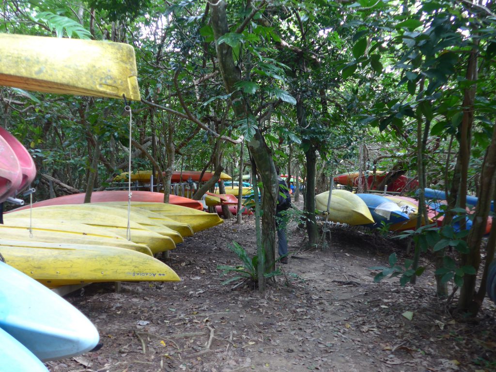 Sunday, we tried to reach one of the amazing waterfalls of the island, 6km cycling. But then some 2-3h looking for the start of the walk to go there… we got pretty close with a dead end to a canoe / kayak launch and storage area in the forest… we got tangled in mangroves and soaked wet from rain, but never got near those waterfalls – apparently the locals make it very hard to avoid using the service of a guide.