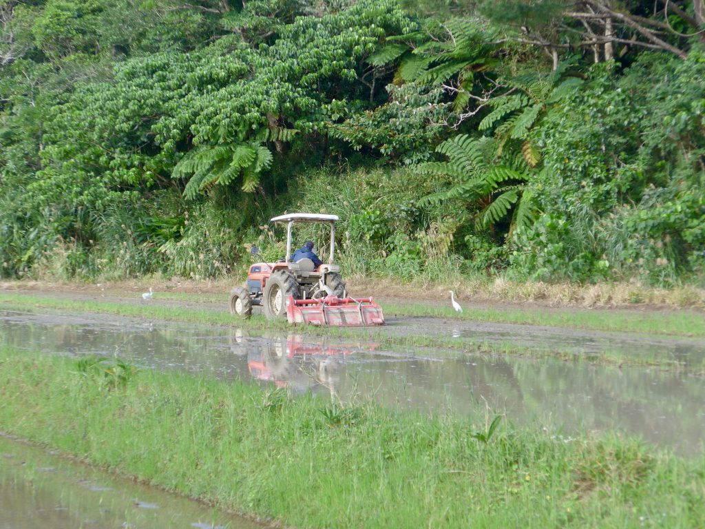 Always a white crane in rice fields, quite shy… but not afraid of tractor ploughing the rice field.