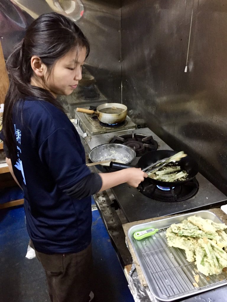 young shoots…Tampura!!!Egg, flour, water + lots of cabbage. Add sea food when fried.