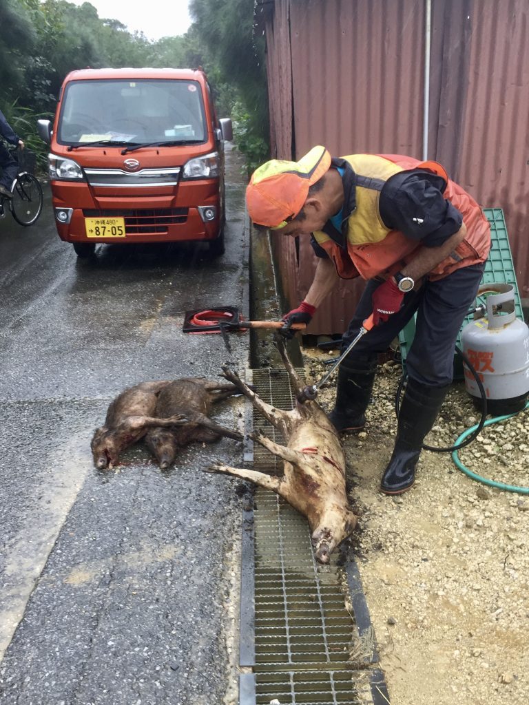 And after been soaked to the bones, we came to spot local hunters which had coughed some inoshishi (wild boars), apparently doing lots of damage to crops, but good food…