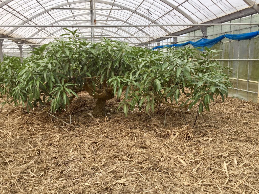 Mango trees in greenhouses, also not yet the right season… just barely blooming.