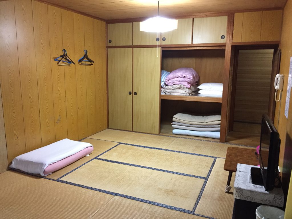 So shoes worn outside stay outside or in the door way, you find shoes for kitchen, versus shoes for living room, shoes for bathrooms… and NO shoes for tatami / sleeping room!