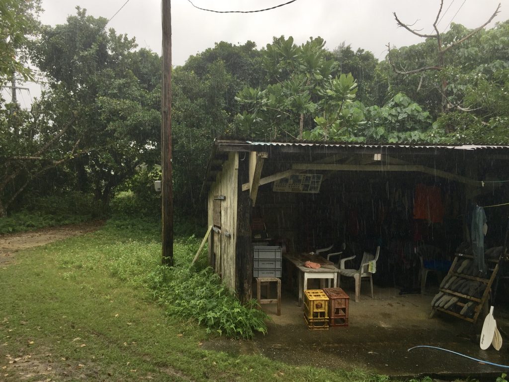 First weekend on island, sunny Saturday, rainy Sunday. Rain is to be expected in this season.