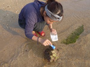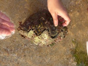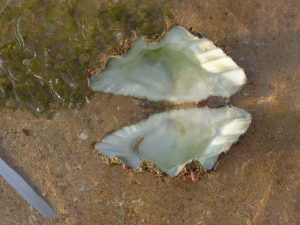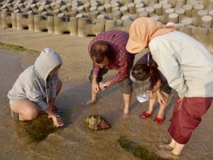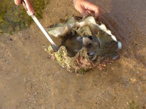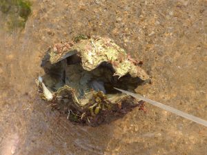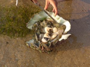 Nozomi found a big shell from the sea, we had to struggle a bit to get it open and extract the body.